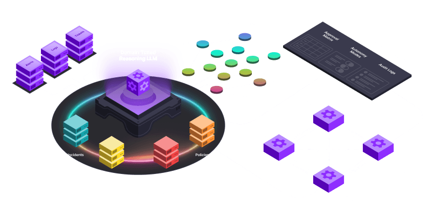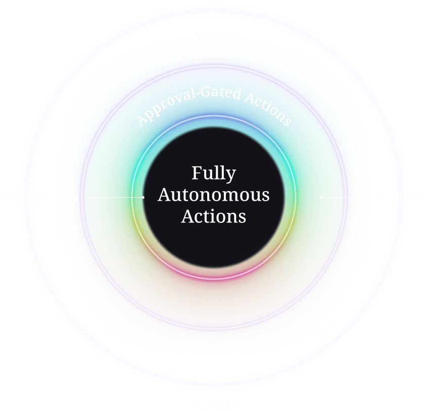 Autonomy without governance is irresponsible. Control is enforced through policy-bounded actions, risk-tiered approvals, blast-radius constraints, and full auditability.